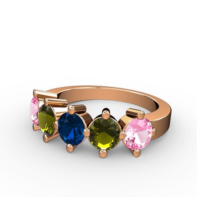 Lab safir, peridot ve pembe kuvars 925 ayar rose altın kaplama gümüş yüzük