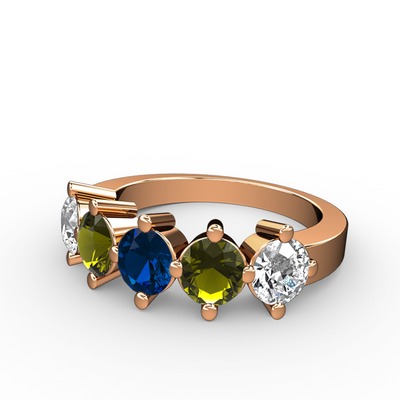 Lab safir, peridot ve pırlanta 925 ayar rose altın kaplama gümüş yüzük (1.32 karat)