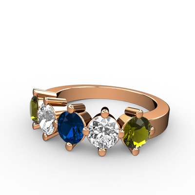 Lab safir, pırlanta ve peridot 14 ayar rose altın yüzük (1.32 karat)