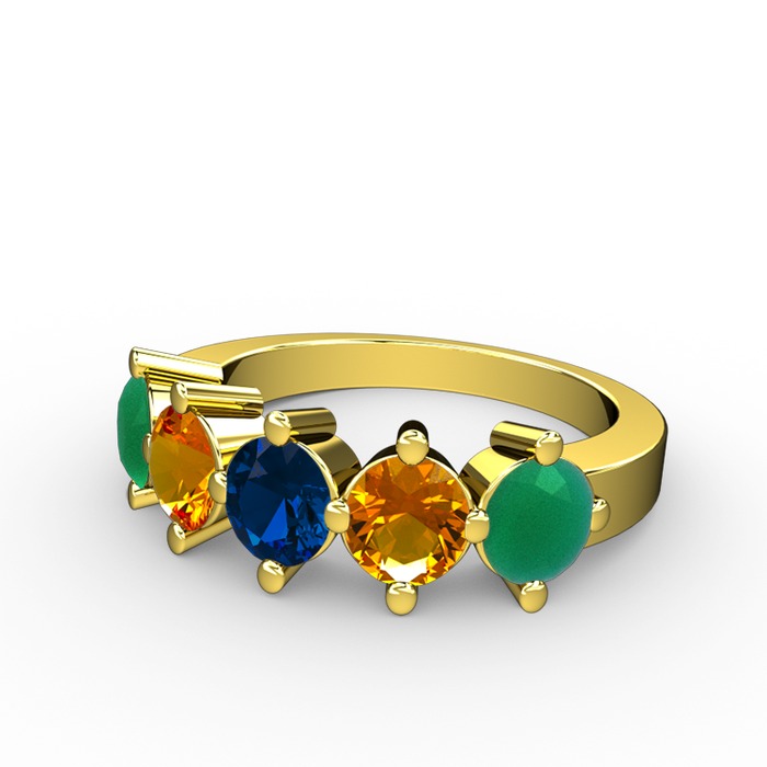 Lab safir, sitrin ve kök zümrüt 14 ayar altın yüzük