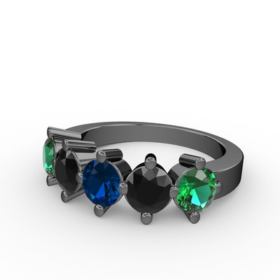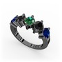 Lab safir, siyah zirkon ve yeşil kuvars 925 ayar siyah rodyum kaplama gümüş yüzük
