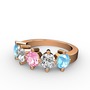 Pembe kuvars, beyaz zirkon ve akuamarin 925 ayar rose altın kaplama gümüş yüzük