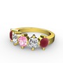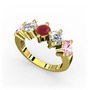 Pembe kuvars, beyaz zirkon ve kök yakut 18 ayar altın yüzük