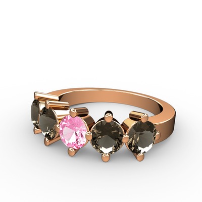 Pembe kuvars ve dumanlı kuvars 18 ayar rose altın yüzük