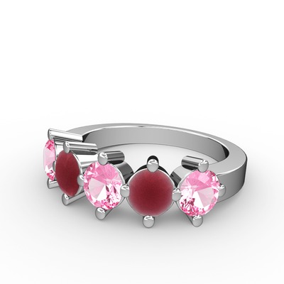 Pembe kuvars ve kök yakut 8 ayar beyaz altın yüzük