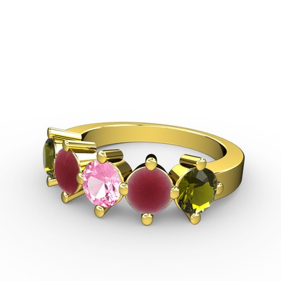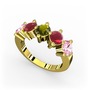 Pembe kuvars, kök yakut ve peridot 925 ayar altın kaplama gümüş yüzük