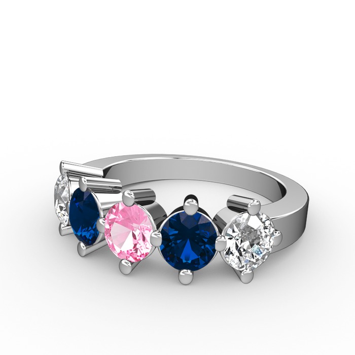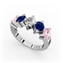 Pembe kuvars, lab safir ve pırlanta 14 ayar beyaz altın yüzük (1.32 karat)