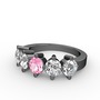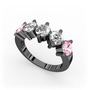 Pembe kuvars, pırlanta ve beyaz zirkon 925 ayar siyah rodyum kaplama gümüş yüzük (1.32 karat)