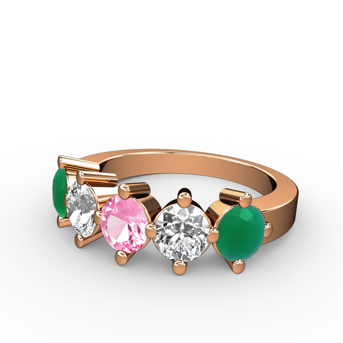 Pembe kuvars, pırlanta ve kök zümrüt 18 ayar rose altın yüzük (1.32 karat)