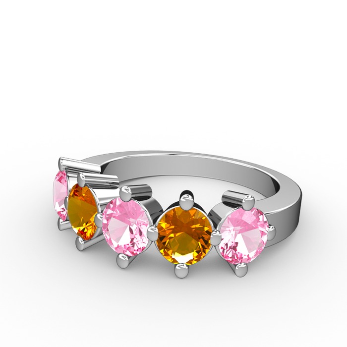 Pembe kuvars ve sitrin 14 ayar beyaz altın yüzük