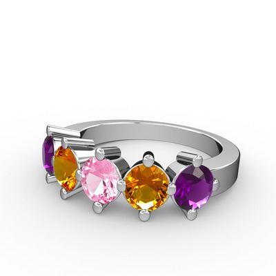 Pembe kuvars, sitrin ve ametist 14 ayar beyaz altın yüzük