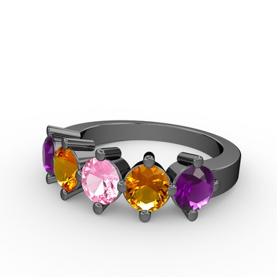 Pembe kuvars, sitrin ve ametist 925 ayar siyah rodyum kaplama gümüş yüzük