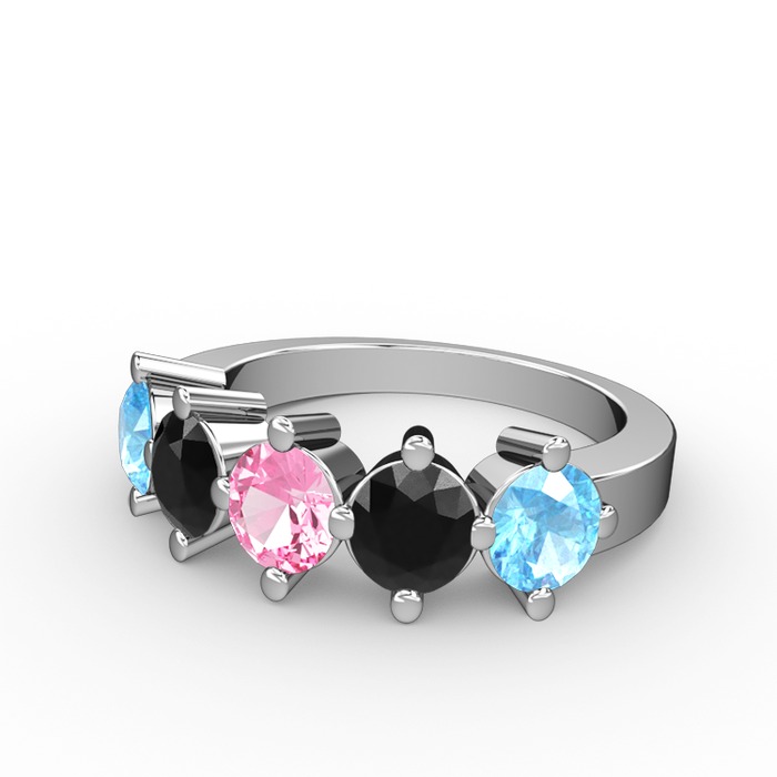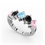 Pembe kuvars, siyah zirkon ve akuamarin 8 ayar beyaz altın yüzük