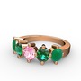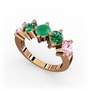 Pembe kuvars, yeşil kuvars ve kök zümrüt 14 ayar rose altın yüzük