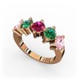 Pembe kuvars, yeşil kuvars ve rodolit garnet 8 ayar rose altın yüzük