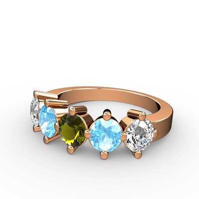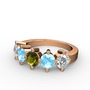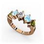 Peridot, akuamarin ve beyaz zirkon 14 ayar rose altın yüzük