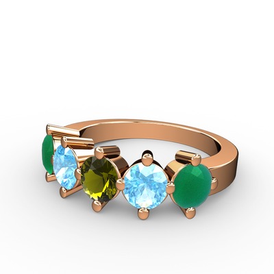Peridot, akuamarin ve kök zümrüt 14 ayar rose altın yüzük
