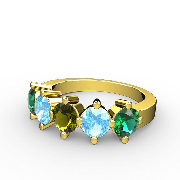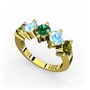 Peridot, akuamarin ve yeşil kuvars 14 ayar altın yüzük