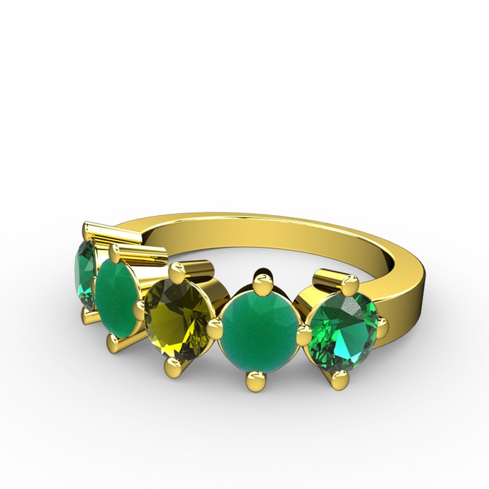 Peridot, kök zümrüt ve yeşil kuvars 14 ayar altın yüzük