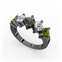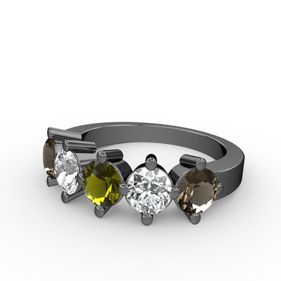 Peridot, pırlanta ve dumanlı kuvars 925 ayar siyah rodyum kaplama gümüş yüzük (1.32 karat)