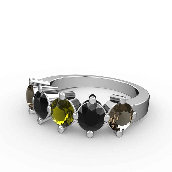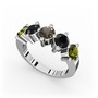 Peridot, siyah zirkon ve dumanlı kuvars 8 ayar beyaz altın yüzük