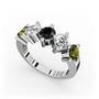 Peridot, swarovski ve siyah zirkon 14 ayar beyaz altın yüzük