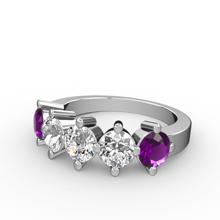 Pırlanta, beyaz zirkon ve ametist 14 ayar beyaz altın yüzük (0.66 karat)