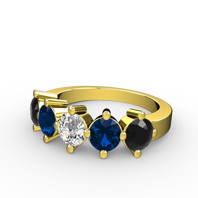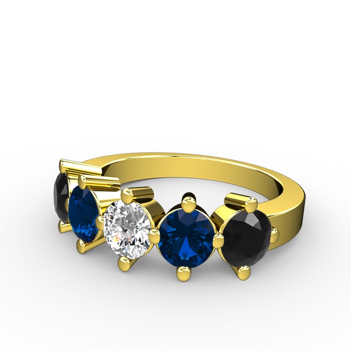 Pırlanta, lab safir ve siyah zirkon 18 ayar altın yüzük (0.66 karat)