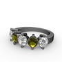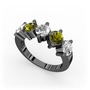 Pırlanta, peridot ve swarovski 925 ayar siyah rodyum kaplama gümüş yüzük (0.66 karat)
