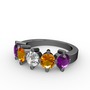 Pırlanta, sitrin ve ametist 925 ayar siyah rodyum kaplama gümüş yüzük (0.66 karat)
