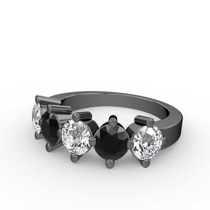 Pırlanta, siyah zirkon ve beyaz zirkon 925 ayar siyah rodyum kaplama gümüş yüzük (0.66 karat)