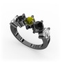 Pırlanta, siyah zirkon ve peridot 925 ayar siyah rodyum kaplama gümüş yüzük (0.66 karat)