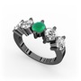 Pırlanta, swarovski ve kök zümrüt 925 ayar siyah rodyum kaplama gümüş yüzük (0.66 karat)