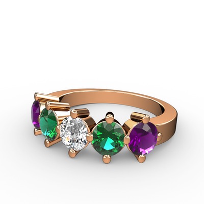 Pırlanta, yeşil kuvars ve ametist 14 ayar rose altın yüzük (0.66 karat)
