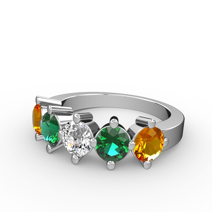 Pırlanta, yeşil kuvars ve sitrin 14 ayar beyaz altın yüzük (0.66 karat)
