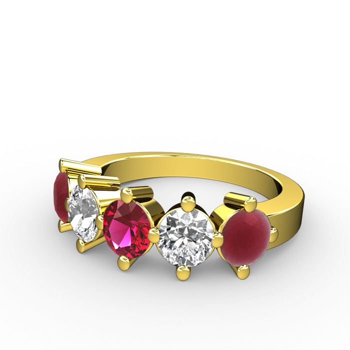 Rodolit garnet, beyaz zirkon ve kök yakut 14 ayar altın yüzük