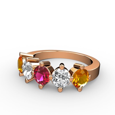 Rodolit garnet, beyaz zirkon ve sitrin 8 ayar rose altın yüzük