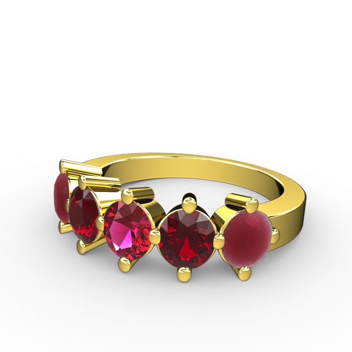 Rodolit garnet, garnet ve kök yakut 8 ayar altın yüzük