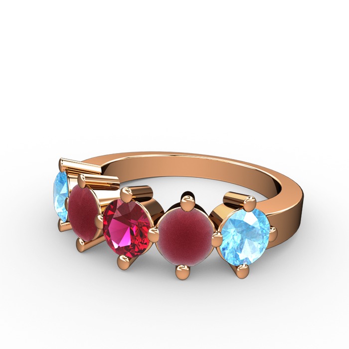 Rodolit garnet, kök yakut ve akuamarin 14 ayar rose altın yüzük
