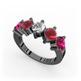 Rodolit garnet, kök yakut ve pırlanta 925 ayar siyah rodyum kaplama gümüş yüzük (1.32 karat)