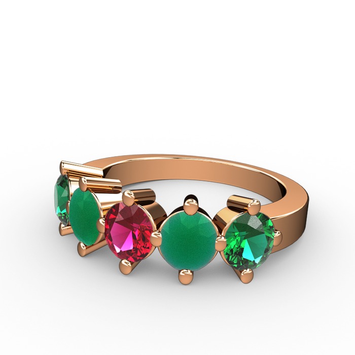 Rodolit garnet, kök zümrüt ve yeşil kuvars 18 ayar rose altın yüzük