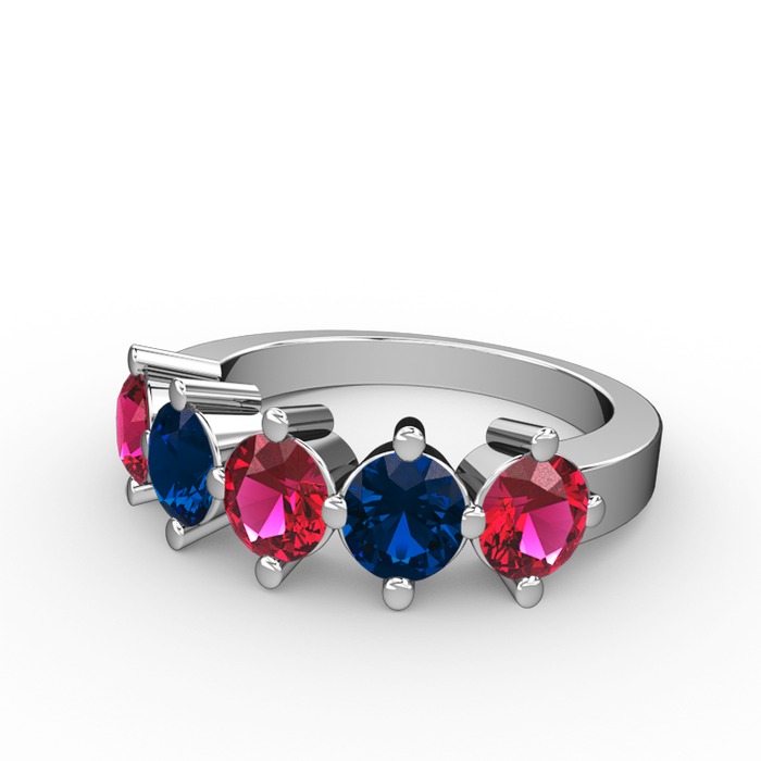 Rodolit garnet ve lab safir 18 ayar beyaz altın yüzük