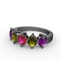 Rodolit garnet, peridot ve ametist 925 ayar siyah rodyum kaplama gümüş yüzük