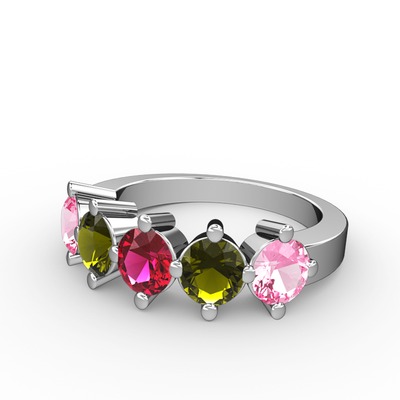 Rodolit garnet, peridot ve pembe kuvars 8 ayar beyaz altın yüzük