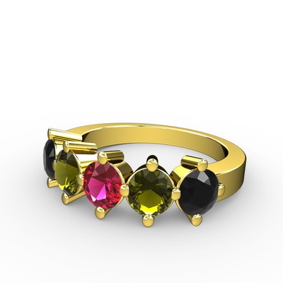 Rodolit garnet, peridot ve siyah zirkon 18 ayar altın yüzük