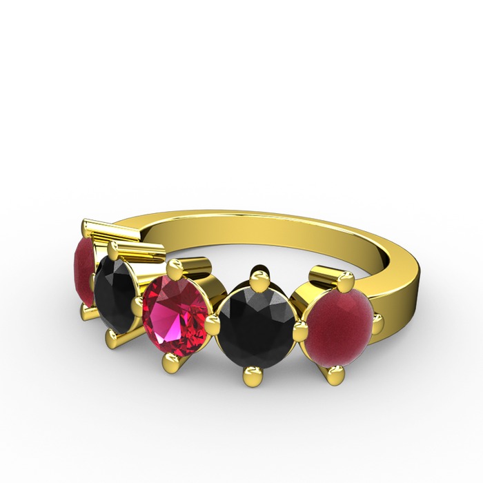 Rodolit garnet, siyah zirkon ve kök yakut 8 ayar altın yüzük