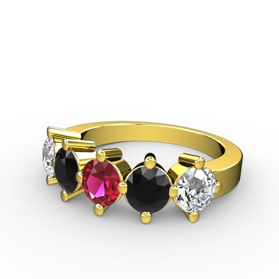 Rodolit garnet, siyah zirkon ve swarovski 14 ayar altın yüzük