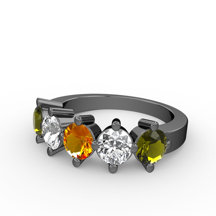 Sitrin, beyaz zirkon ve peridot 925 ayar siyah rodyum kaplama gümüş yüzük