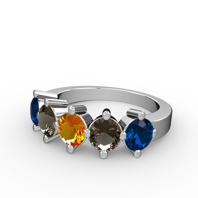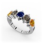 Sitrin, dumanlı kuvars ve lab safir 18 ayar beyaz altın yüzük
