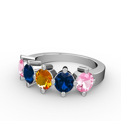 Sitrin, lab safir ve pembe kuvars 18 ayar beyaz altın yüzük
